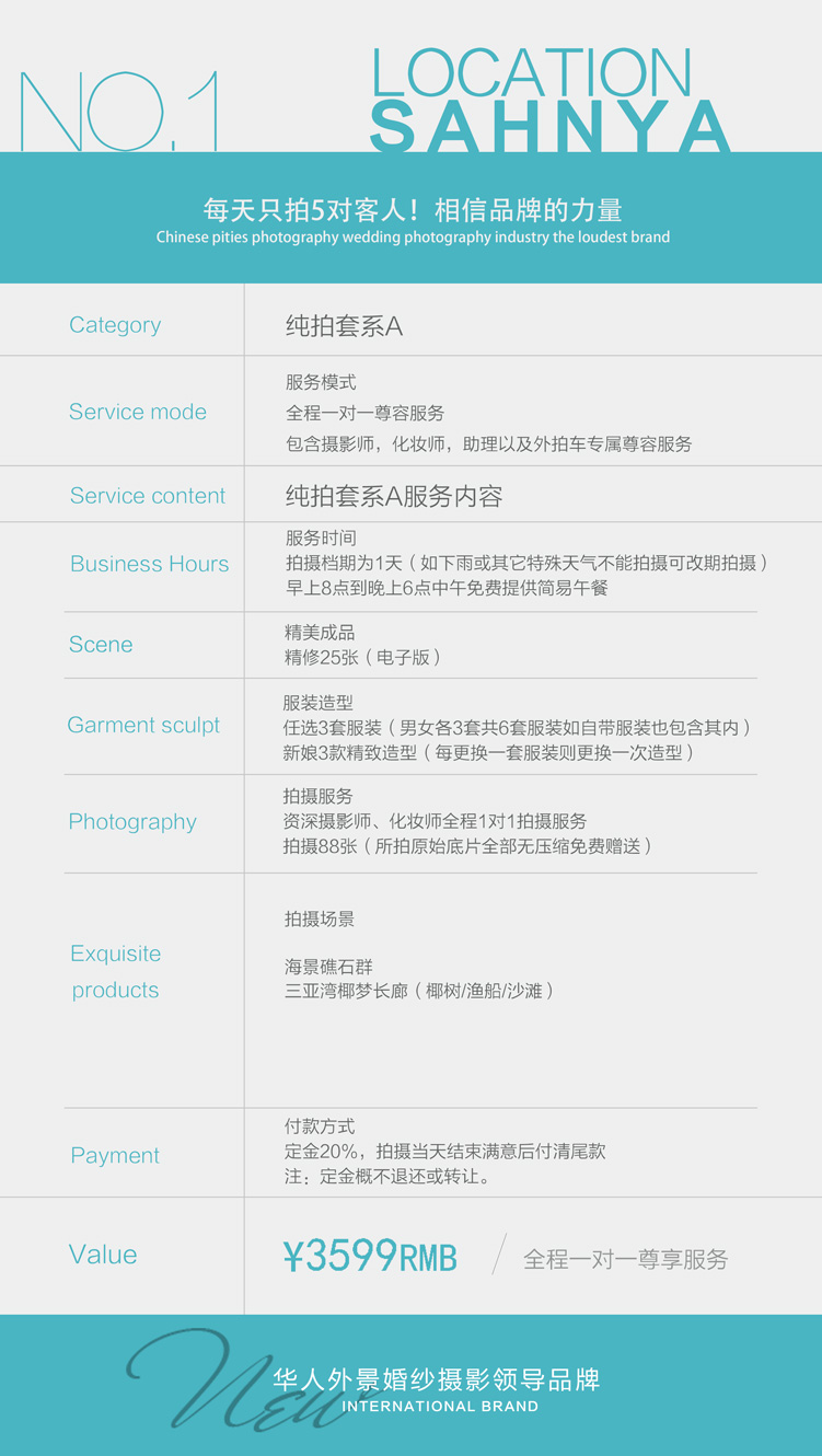合只需要照片而不需要做后期产品的客户。本套系为纯拍套系A,价格便宜。
